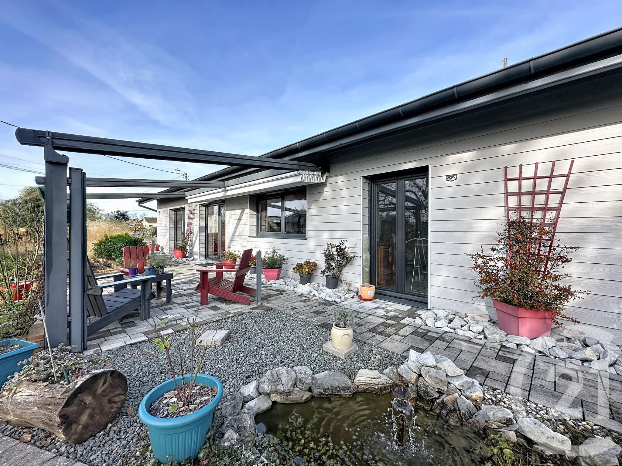 À l'extérieur, profitez d'une grande terrasse idéalement exposée, idéale pour les repas en plein air et les moments de détente. Le jardin aménagé avec goût crée un véritable havre de paix propice à la relaxation.